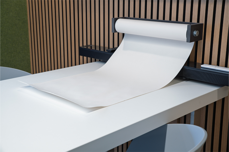 Hier zeigt sich, dass Inklusion ein fester Bestandteil des Raumkonzepts ist: Durch zurückgesetzte Tischbeine schafft die Konstruktion im Unterraum bewusst Platz. So können alle bequem sitzen – unabhängig von Körpergröße, Sitzposition und Mobilität.