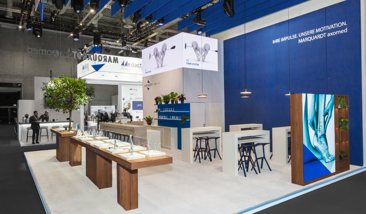 Es ist eines dieser Projekte, bei denen wir leuchtende Augen bekommen. Wir dürfen Geschichten erzählen, die aus dem Kern der Familie Marquardt kommen. Gleichzeitig gilt es, die Marktposition im internationalen Wettbewerb weiter zu stärken. Und somit übersetzen wir Story, Design, Nachhaltigkeit und Erlebnis in ein ganzheitliches Messeerlebnis. Messedesign, Messebau und Kommunikation greifen ineinander und begleiten Marquardt Axomed vom ersten Gedanken bis zum fertigen Auftritt.