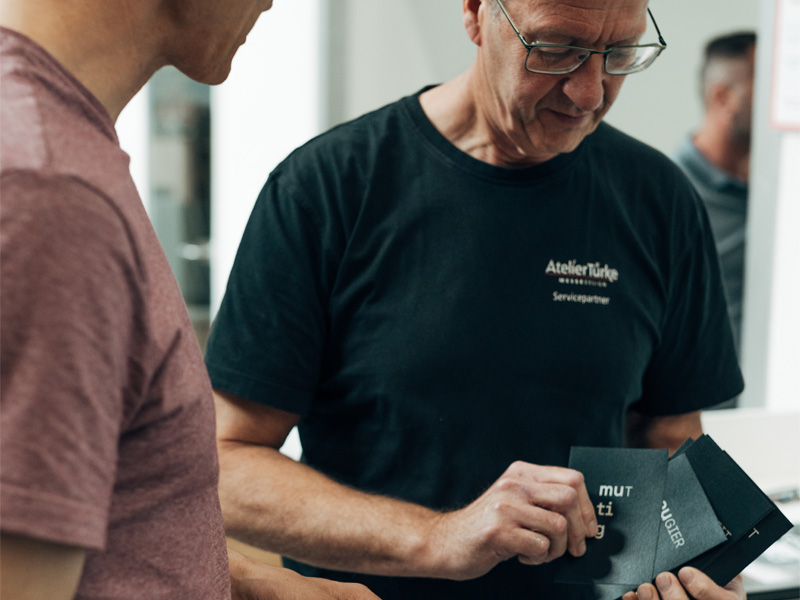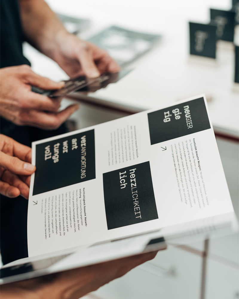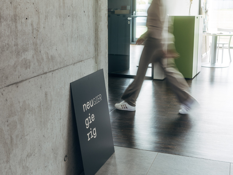 Wir sind neugierig auf Menschen, Materialien, Techniken und die Themen unserer Zeit. Diese Offenheit ist die Basis unserer Kreativität. Sie treibt uns an, Neues auszuprobieren, uns weiterzuentwickeln und unsere Kunden mit frischen Ideen und moderner Technologie voranzubringen.