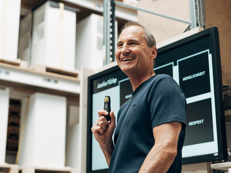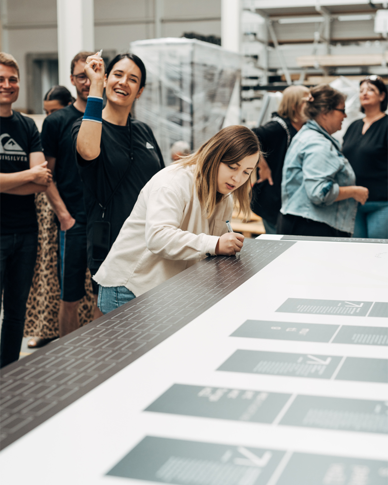 Unsere Werte sind unser Commitment. Jeder, der sie leben möchte, unterzeichnet auf unserem großen Werteboard.